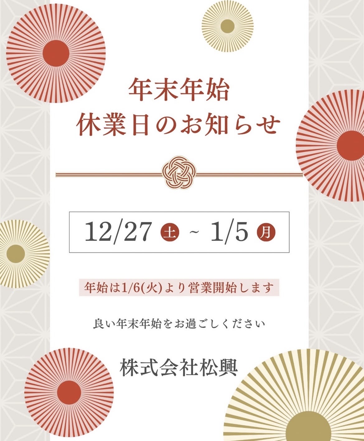 ホーム > お知らせ > 🚧年末年始休業日のお知らせ🚧